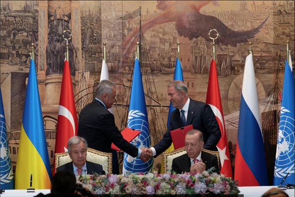 روسیه و اوکراین پس از چند هفته مذاکره در نهایت روز جمعه با میانجیگری نماینده سازمان ملل و دولت ترکیه در شهر استانبول توافق کردند صادرات غلات از بندرهای اوکراین و دریای سیاه از سر گرفته شود؛ توافقی که اعلام آن، موجب افزایش امیدها برای کاهش بحران بینالمللی غذا شده است.