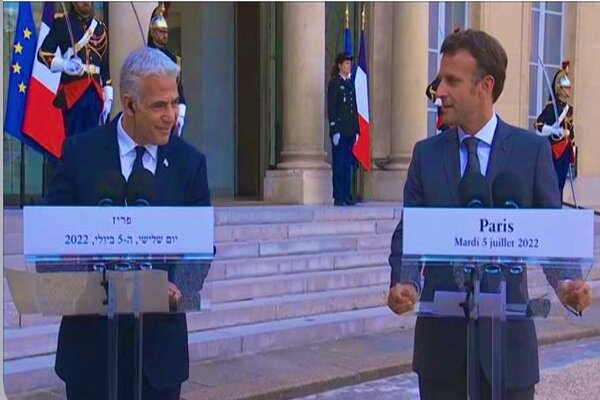 به گزارش این شبکه تلویزیونی، رئیس جمهور فرانسه در کنفرانس خبری مشترک با «یائیر لاپید» نخست وزیر موقت رژیم صهیونیستی در پاریس در این باره اضافه کرد: باید از توافق هسته ای دفاع کنیم و به مذاکرات ادامه دهیم! ما باید از توافق هسته ای با ایران دفاع کنیم و منافع شرکای منطقه ای نظیر (رژیم) اسرائیل را در نظر بگیریم. فرانسه به امنیت (رژیم) اسرائیل، منطقه و مبارزه با تروریسم متعهد است.