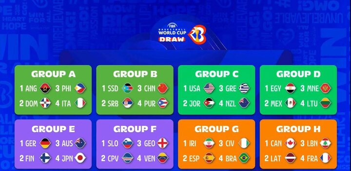 حریفان تیم ملی بسکتبال ایران در مسابقات جام جهانی ۲۰۲۳ مشخص شدند.